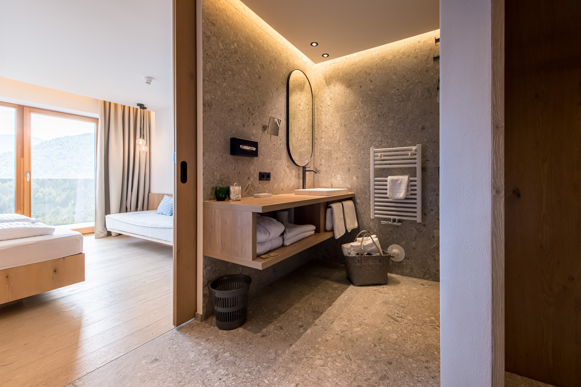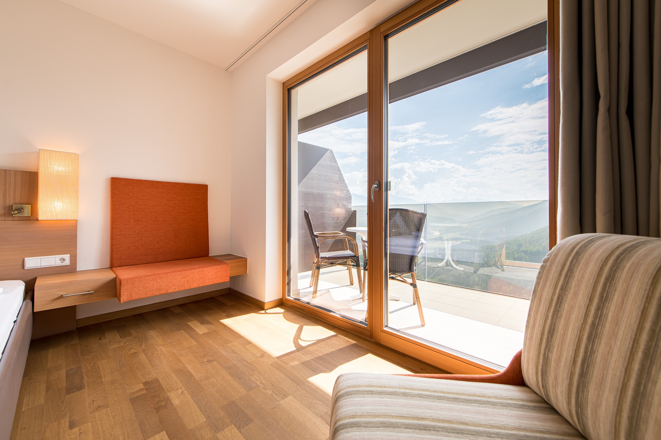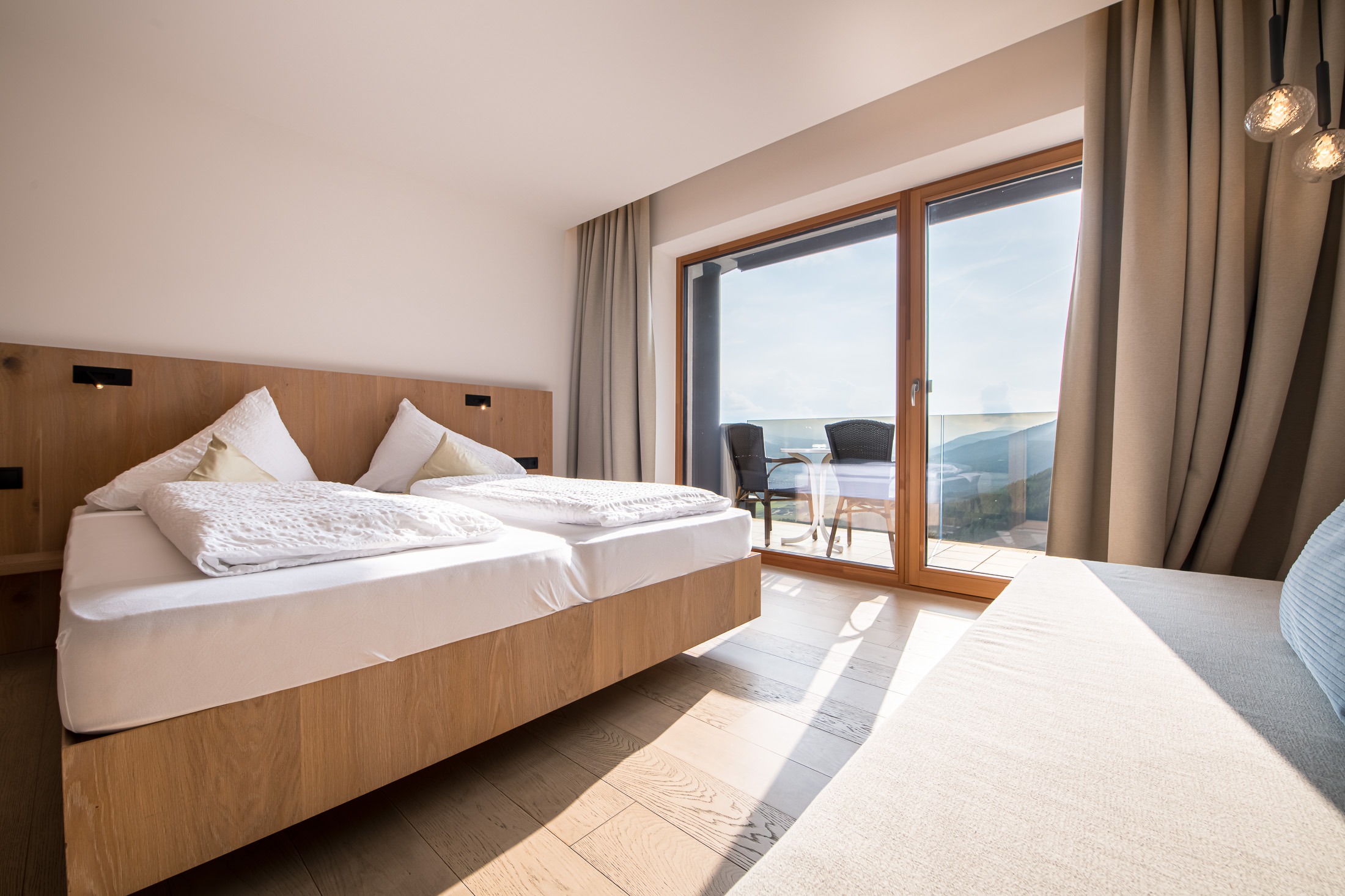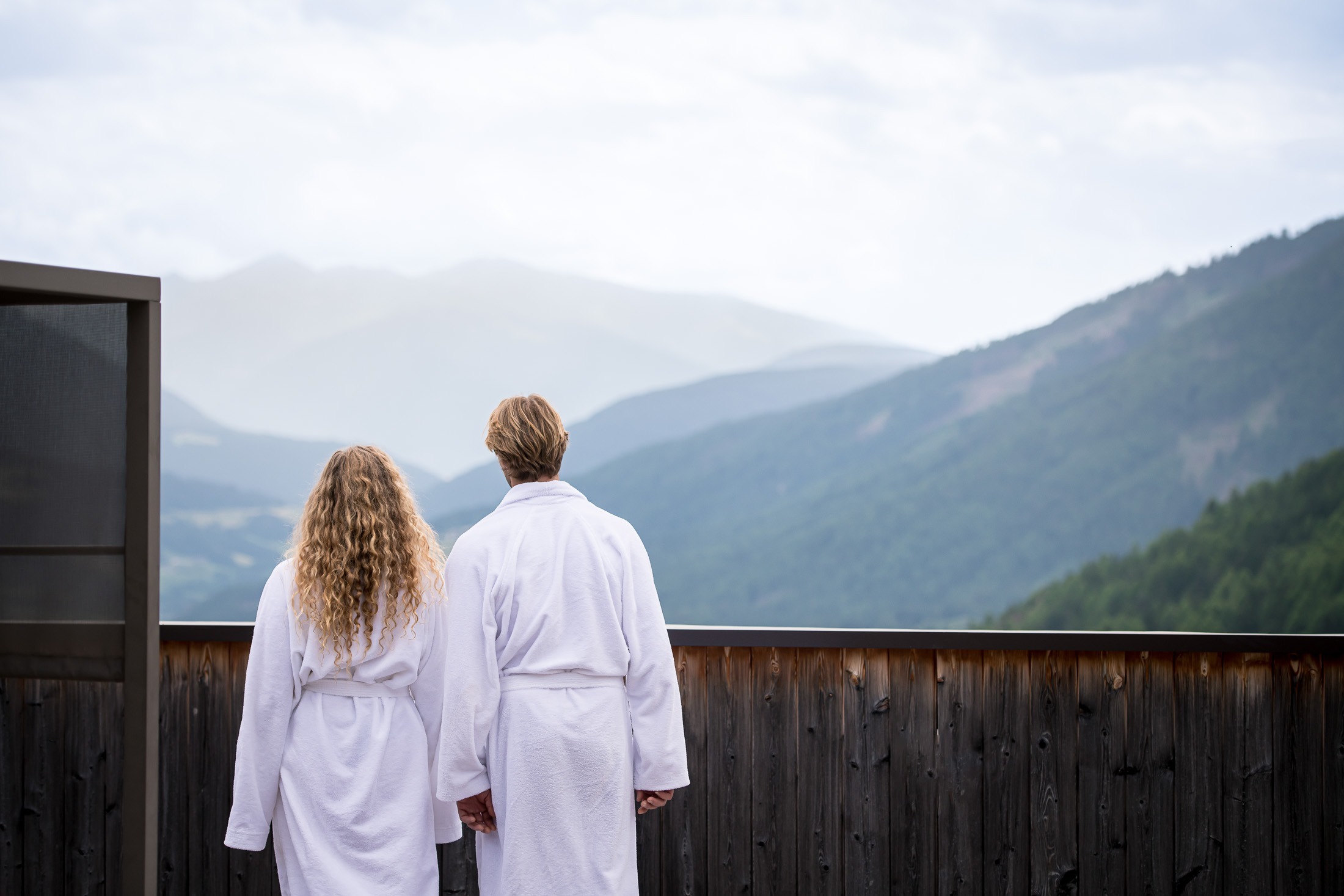 Questo è la sensazione che provo quando quando me ne stò tranquillamente seduto sulla terrazza panoramica ad osservare le montagne che ci circondano. Poi mi guardo attorno e mi sento felice con l’hotel Kristall