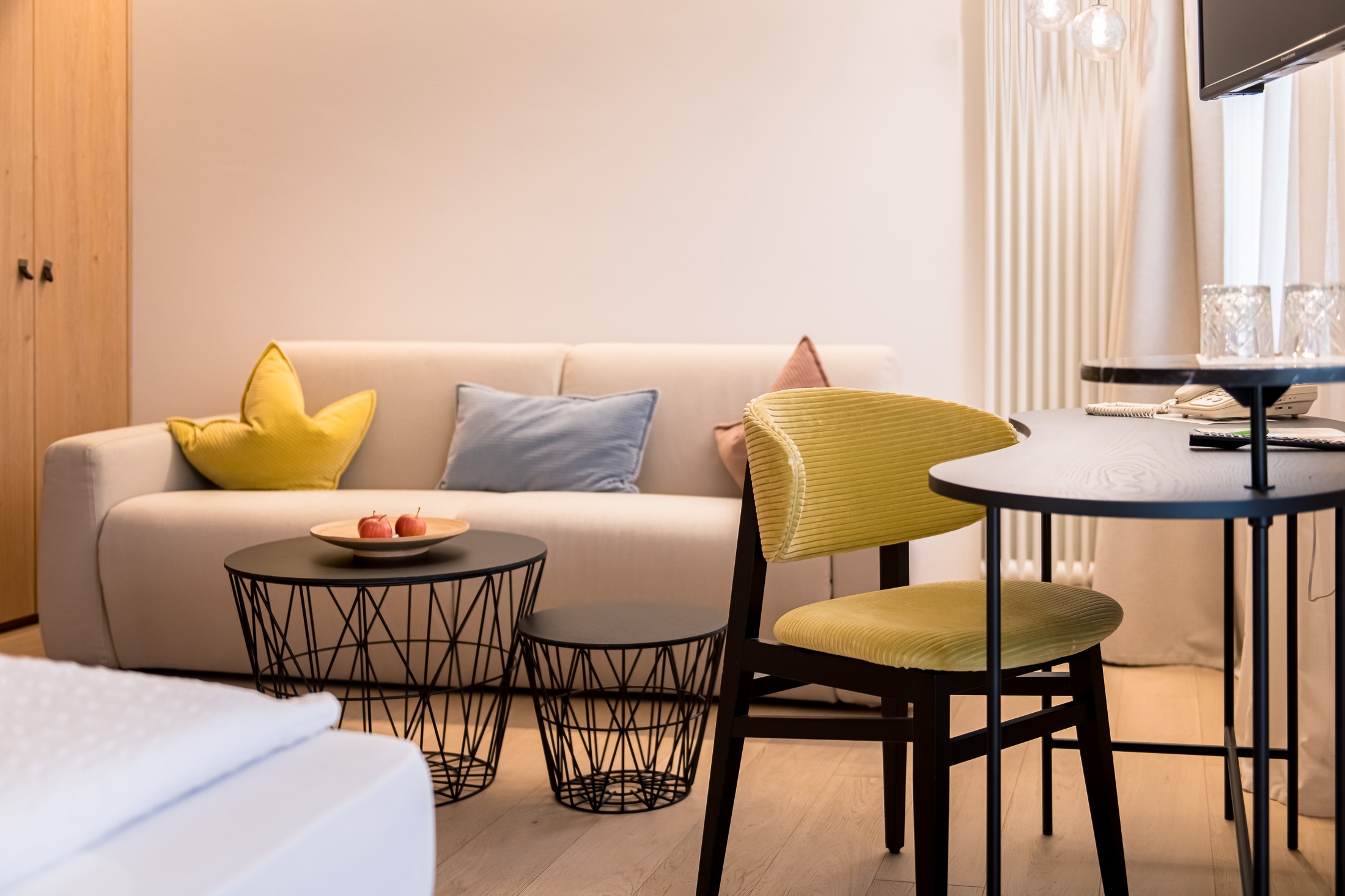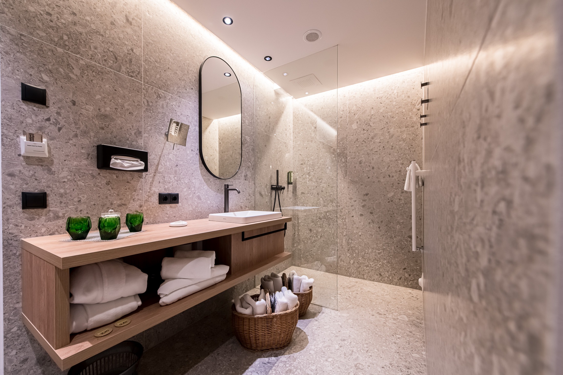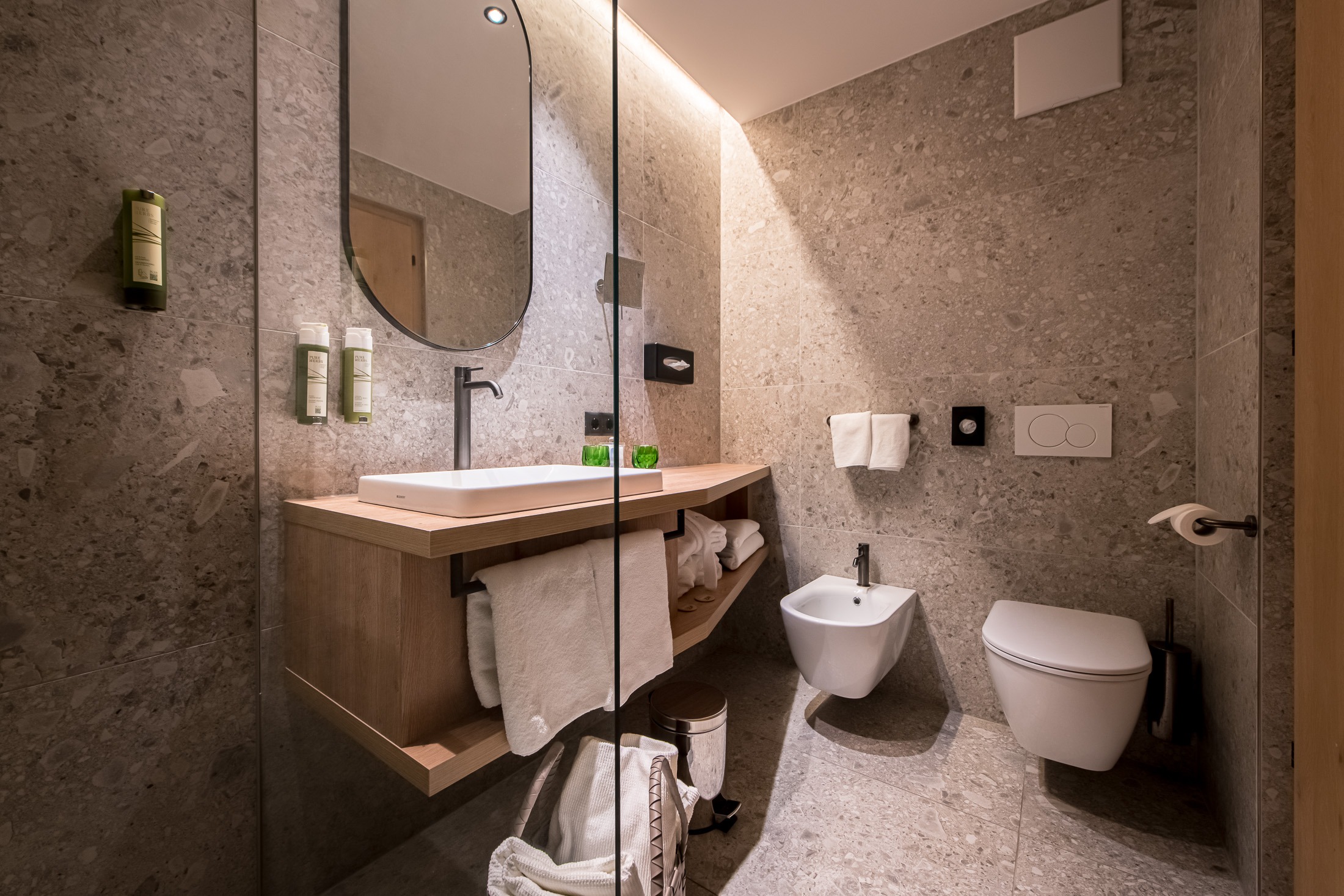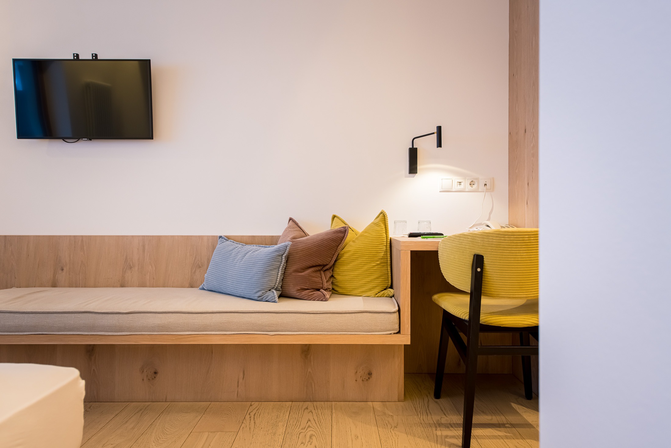 Questo è la sensazione che provo quando quando me ne stò tranquillamente seduto sulla terrazza panoramica ad osservare le montagne che ci circondano. Poi mi guardo attorno e mi sento felice con l’hotel Kristall